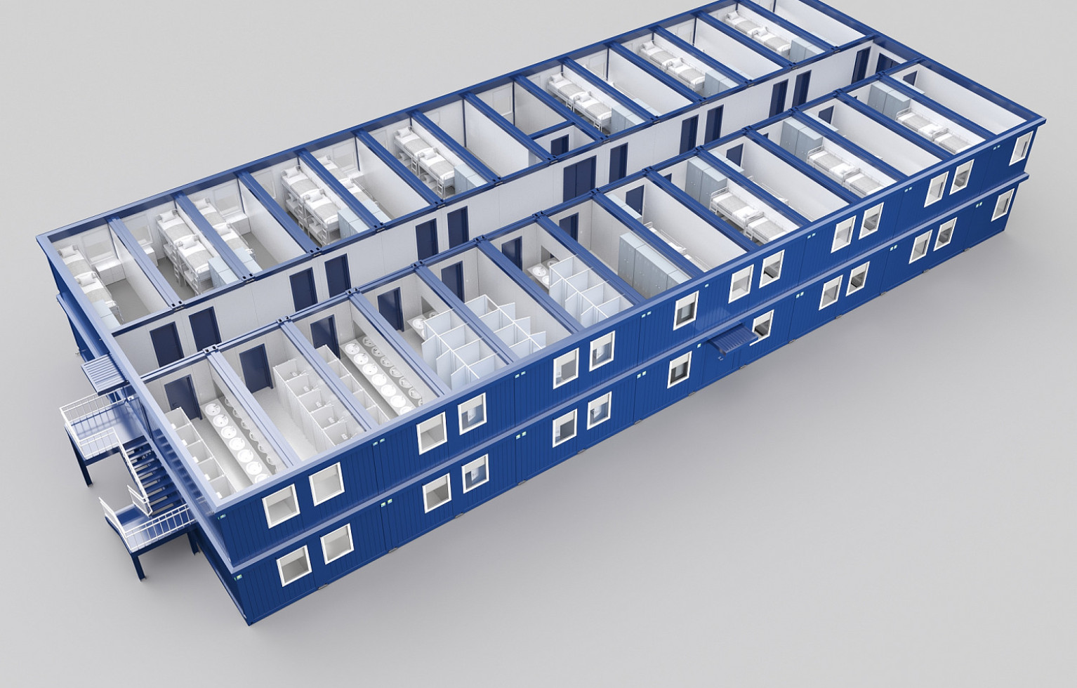 Соединение блоков в многоэтажные структуры позволяет создавать полноценные комплексы с чёткой логистикой и инженерной интеграцией. Такое решение особенно актуально в условиях роста, дефицита площадей или при необходимости быстрой установки. Временное или постоянное — зависит не от конструкции, а от сценария использования.